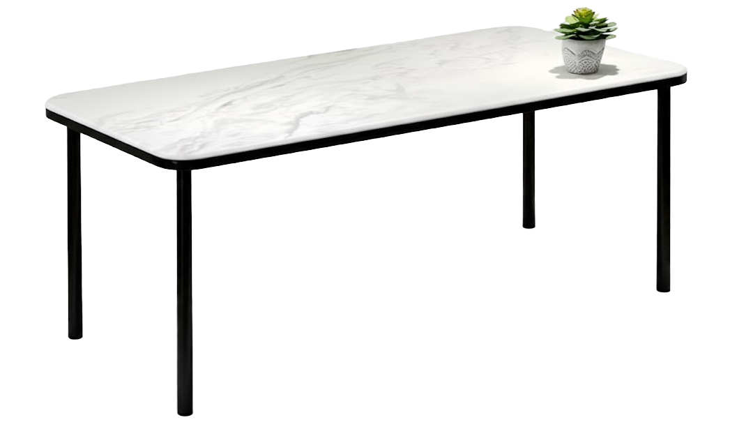Tabletop: Marble or engineered stone (sintered stone / marble-look slab)